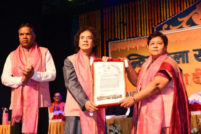 रायपुर- इंदिरा कला एवं संगीत विश्वविद्यालय लोकचेतना, शास्त्रीय संगीत और ललित कलाओं का सुंदर समन्वय है। अपनी लोक चेतना के साथ शास्त्रीय संगीत को बढ़ावा देने का यह यशस्वी उपक्रम छत्तीसगढ़ को ललित कला के क्षेत्र में अंतरराष्ट्रीय स्तर पर खड़ा करता है। कुलाधिपति एवं राज्यपाल सुश्री अनसुइया उईके ने आज इंदिरा कला एवं संगीत विश्वविद्यालय खैरागढ़ के पंद्रहवंे दीक्षांत समारोह को सम्बोधित करते हुए इस आशय के विचार व्यक्त किए। इस अवसर पर कुलाधिपति सुश्री उईके ने पद्मश्री एवं पद्मभूषण से सम्मानित सुप्रसिद्ध तबला वादक श्री जाकिर हुसैन को मानद डॉक्टरेट की उपाधि से सम्मानित किया।