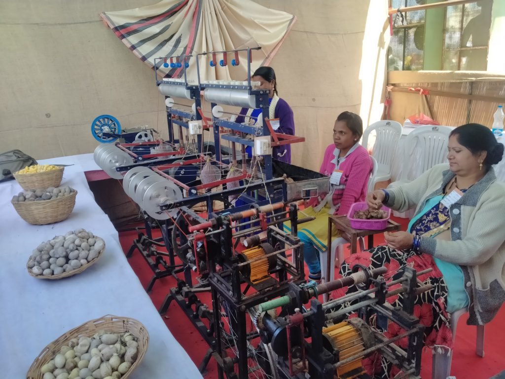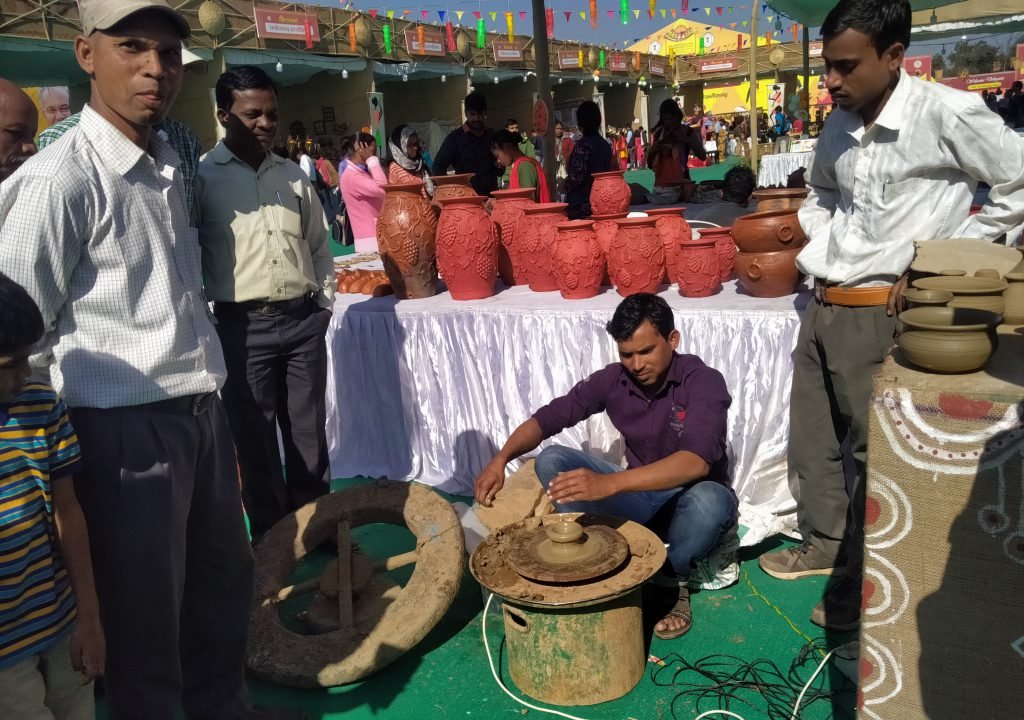 छत्तीसगढ़ के माटीशिल्पी श्री अशोक चक्रधारी द्वारा चाक से तैयार किए जा रहे मिट्टी गमले सहित विभिन्न बर्तनों के निर्माण और कोसा से धागा बनाने की प्रक्रिया देखी जा सकती है। माटीशिल्प के तहत मिट्टी से बने हाथी, घोड़ा, गमला, दीया सहित घरेलू उपयोग के विभिन्न बर्तन बिक्री-सह-प्रदर्शनी के लिए रखे गए है। यहां कोण्डागांव के बांस शिल्पियों द्वारा तैयार किए गए पेन स्टैण्ड, बासुंरी, मछली, फर्नीचर, हैण्डलूम प्रदर्शनी में कुरूद, रायगढ़, बिलासपुर, छुईखदान, सोमाझटिया, चांपा से आए कारीगरों द्वारा कोसा के उत्कृष्ट उत्पादों की प्रदर्शनी लगाई गई है।