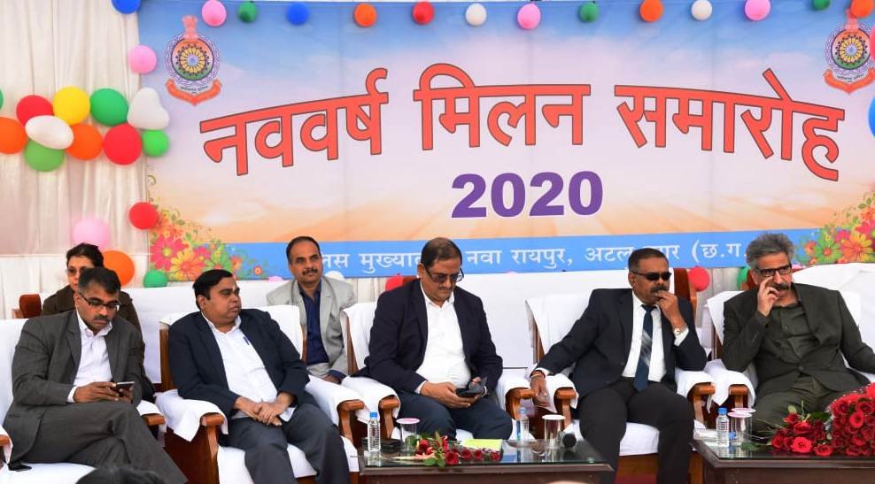 रायपुर – पुलिस मुख्यालय अटल नगर नवा रायपुर में आज नववर्ष मिलन समारोह आयोजित किया गया। इस अवसर पर पुलिस महानिदेशक श्री डी.एम. अवस्थी ने सभी पुलिस अधिकारियों एवं कर्मचारियों को नववर्ष की शुभकामनाएं देकर उनके उज्जवल भविष्य की कामना करते हुए बधाई दी। श्री अवस्थी ने अपने सम्बोधन में कहा कि सभी पुलिस अधिकारी-कर्मचारी दूसरों की कमियों को न देखते हुए उनकी अच्छाईयों से सीख लें और सभी लोग आपसी मतभेदों को भुलाकर आपसी सामंजस्य बनाकर कार्य सम्पादित करें। उन्होंने कहा कि प्रदेश की बेहतर कानून व्यवस्था बनाये रखने के लिए अच्छे ढंग से कार्य करने का संकल्प ले, जिससे छत्तीसगढ़ का नाम राष्ट्रीय स्तर ऊंचा उठ सके।