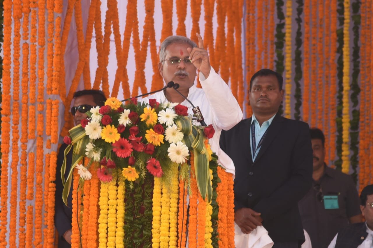मुख्यमंत्री श्री भूपेश बघेल ने आम सभा को संबोधित करते हुए कहा कि प्रदेश सरकार अपना वायदा पूरा करेगी और हर हाल में किसानों का धान 2500 रूपए प्रति क्विंटल की दर से ही खरीदेगी। छत्तीसगढ़ की जनता के आशीर्वाद और सहयोग से हमारी सरकार अनाज का अपमान नहीं होने देगी। मुख्यमंत्री ने कहा कि किसानों को धान की भरपूर कीमत मिलने के कारण छत्तीसगढ़ में मंदी की स्थिति नहीं है। श्री बघेल ने कहा कि केन्द्र सरकार से केन्द्रीय पुल का चावल लेने के लिए हमारी कोशिश लगातार जारी है। छत्तीसगढ़ की जनता ने हमारी सरकार को आशीर्वाद दिया है। जनता के हक की आवाज दिल्ली तक जरूर पहुंचेगी। श्री बघेल ने कहा कि इस साल खरीफ मौसम में 85 लाख मीटरिक टन धान खरीदने का लक्ष्य रखा गया है। छत्तीसगढ़ में गरीब, किसान, मजदूर, महिला, युवा सबके विकास के लिए योजना बनाकर क्रियान्वयन किया जा रहा है। लोगों के स्वास्थ्य की चिंता करते हुए डॉ. खूबचंद बघेल स्वास्थ्य सहायता योजना के तहत 5 लाख रूपए तक के इलाज की सुविधा दी जाएगी। बड़ी बीमारियों में 20 लाख रूपए तक की सहायता देने की योजना बनाई गई है। देश में छत्तीसगढ़ एक मात्र ऐसा राज्य है जो इतनी बड़ी राशि इलाज के लिए देने का फैसला लिया है।